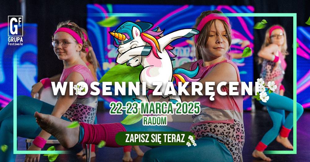 Serdecznie zapraszamy na festiwal tańca WIOSENNI ZAKRĘCENI, który odbędzie się 22-23 marca 2025 roku w Radomiu.