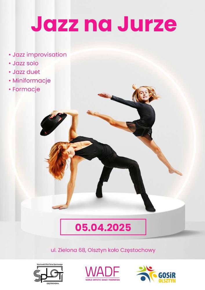 Uczniowski Klub Tańca Sportowego SPLOT Częstochowa serdecznie zaprasza na I edycję turnieju tanecznego Jazz na Jurze ! Turniej odbędzie się w Gminnym Ośrodku Sportu i Rekreacji w Olsztynie koło Częstochowy.