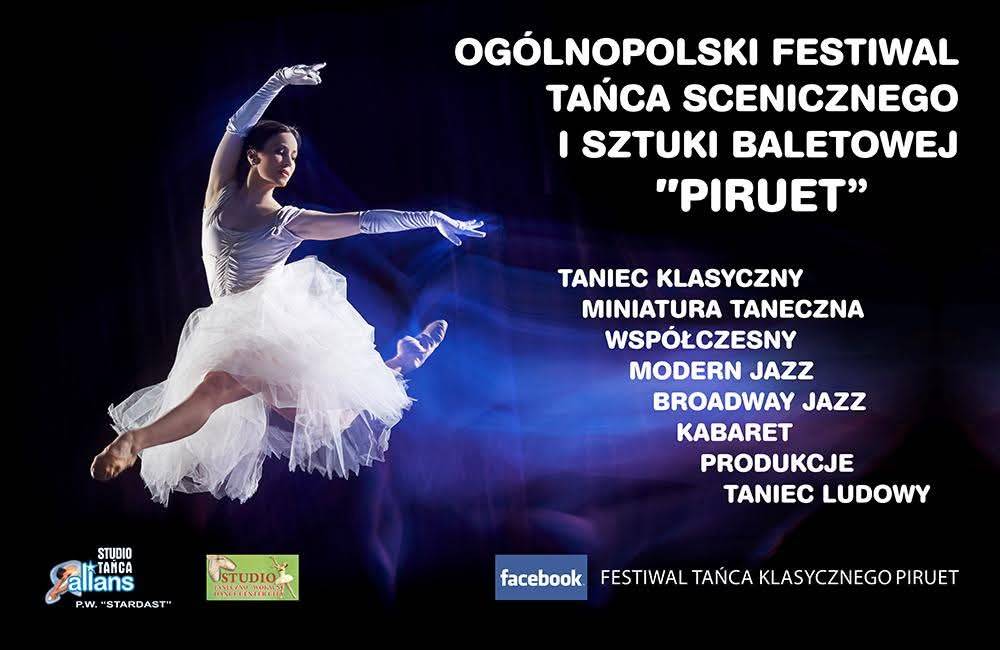 XI EDYCJA Festiwalu PIRUET. Serdecznie zapraszamy wszystkich miłośników Tańca klasycznego ModerJazz. Jazz. Współczesny .Inne formy tańca. Miniatura taneczne. Integracja i wymiana doświadczeń dzieci i młodzieży. Tancerze indywidualne i nie zrzeszone, szkoły tańca, studia taneczne i Academie. Ekipa jurorów od 3 do 5 osób. Od 1 do 3 miejsca Puchary. Również od 4 do 6 miejsca statuetki. Dyplomy do 8 miejsca . Dla uczestników formacji I mini formacji w kategorii wiekowe do lat 9 Maskotki. Dyplomy i statuetki Wyróżnienia za choreografie i stroje artystyczne. GRAND PRIX WOJEWODY PODLASKIEGO.