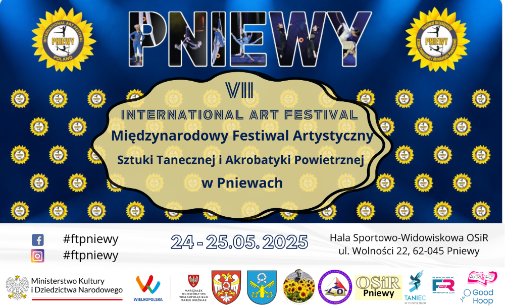 Festiwal Artystyczny w Pniewach ma na celu stworzenie przestrzeni dla wymiany doświadczeń i inspiracji w dziedzinie sztuki tanecznej i cyrkowej oraz akrobatyki powietrznej, promując różnorodność kulturową i innowacyjne techniki artystyczne.