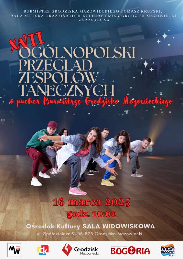 Serdecznie zapraszamy na XVII edycję Ogólnopolskiego Przeglądu Zespołów Tanecznych o Puchar Burmistrza Grodziska Mazowieckiego