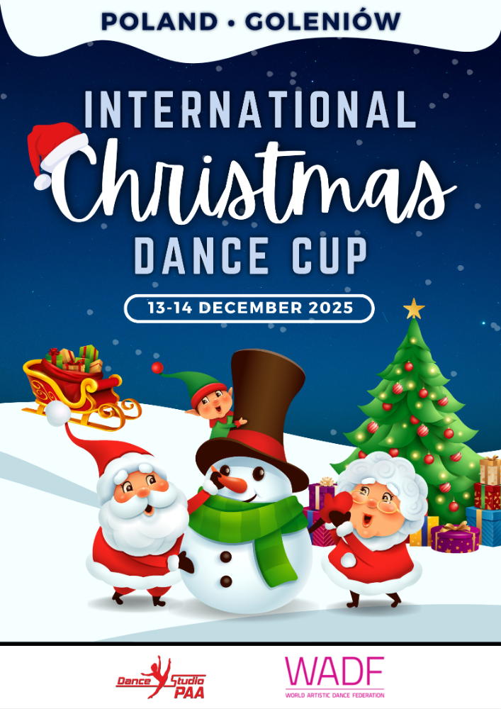 Wielkimi krokami zbliża się nasz coroczny turniej 𝗜𝗻𝘁𝗲𝗿𝗻𝗮𝘁𝗶𝗼𝗻𝗮𝗹 𝗖𝗵𝗿𝗶𝘀𝘁𝗺𝗮𝘀 𝗗𝗮𝗻𝗰𝗲 𝗖𝘂𝗽 𝗪𝗔𝗗𝗙 𝘄 𝗚𝗼𝗹𝗲𝗻𝗶𝗼𝘄𝗶𝗲 na który już dzisiaj wszystkich Was zapraszamy!