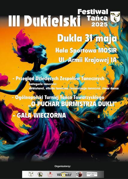 Ośrodek Kultury w Dukli, Studio Tańca “Gracja” serdecznie zaprasza na “III Dukielski Festiwal Tańca”. Jest to coroczne wydarzenie, które przyciąga tancerzy z całego kraju. Atmosfera jest pełna emocji, energii i zaciętej rywalizacji, a jednocześnie widać ogromną pasję i radość z tańca. Dla tancerzy jest to świetna okazja do wymiany doświadczeń, spotkania z innymi pasjonatami, a także do zdobycia cennych wskazówek od profesjonalnych sędziów.