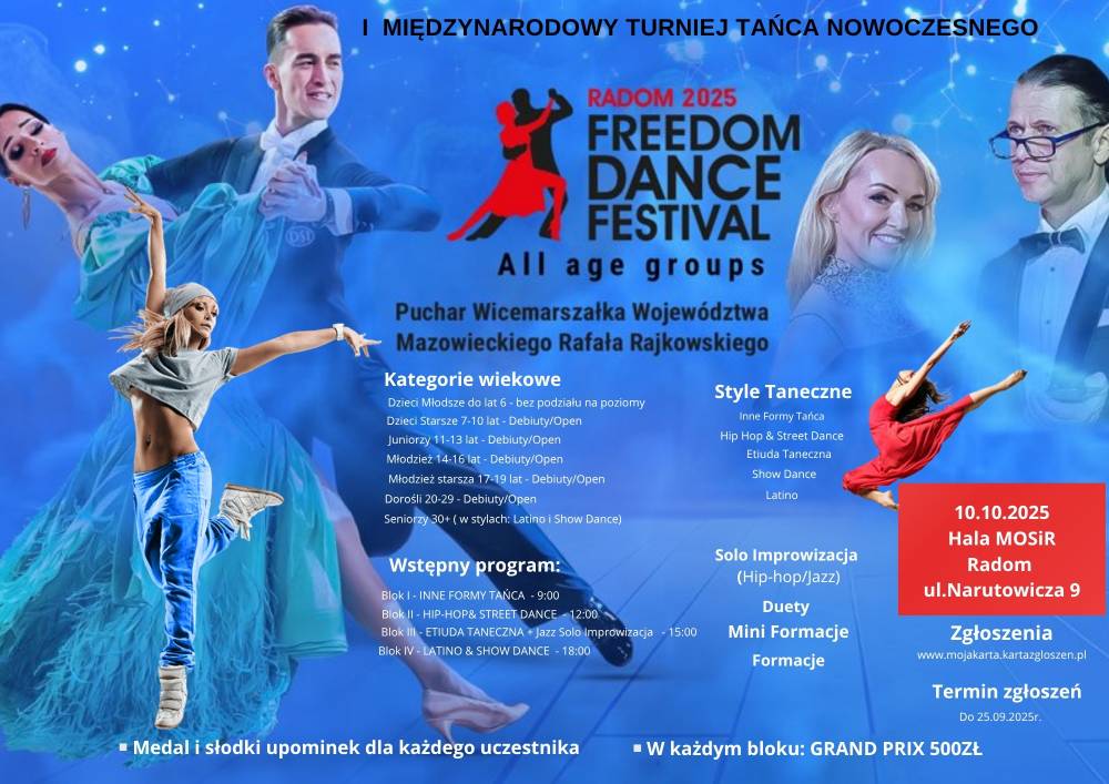 *Debiuty – tancerze/tancerki trenujące nie dłużej niż rok lub ich pierwszy turniej* Open - wszyscy