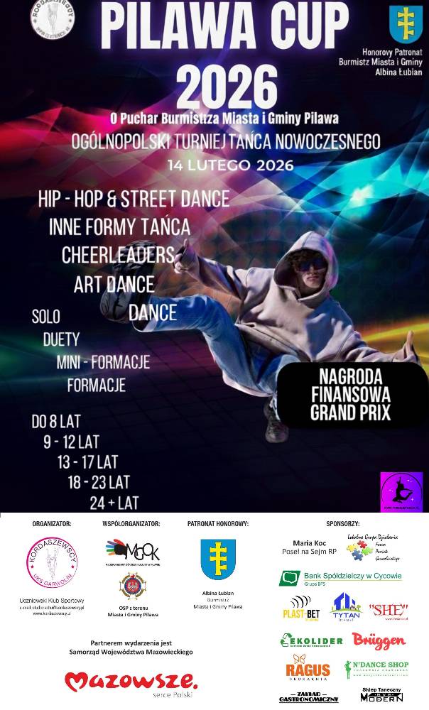 Ramowy program turnieju zostanie ogłoszony po upływie terminu do składania zgłoszeń, na stronie internetowej www.pilawa.turniejetanca.pl